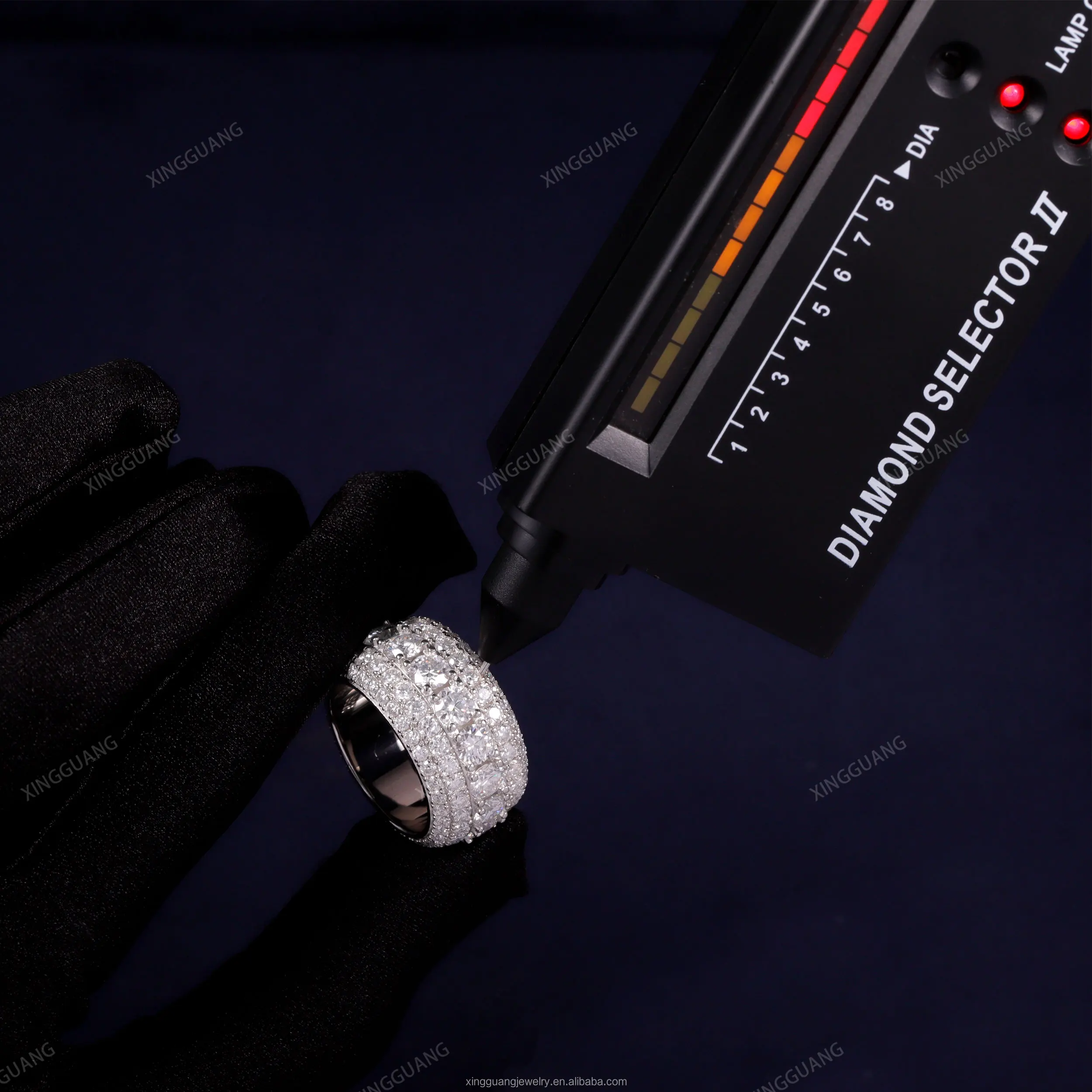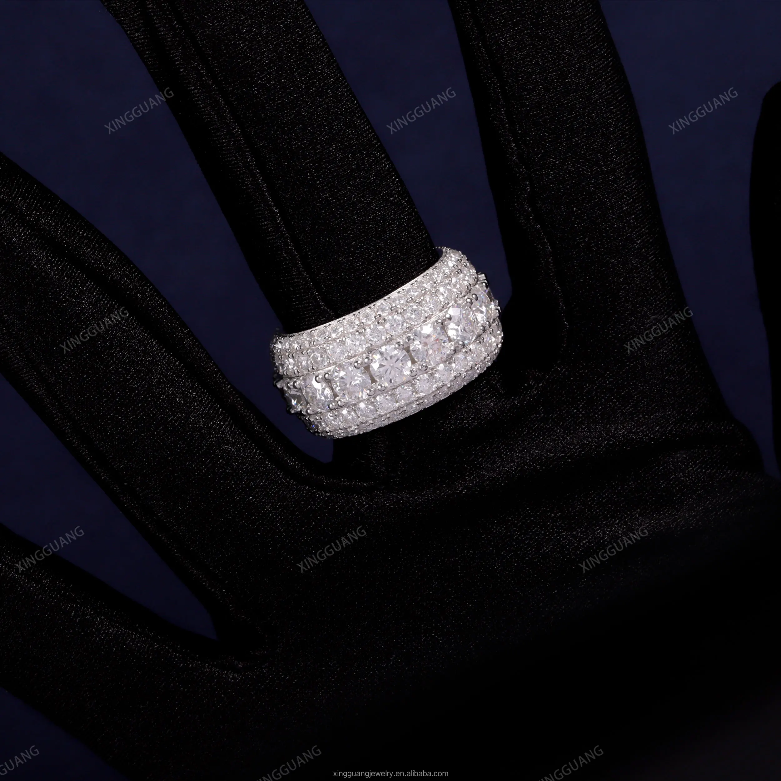 XingGuang In Stock Wholesale Price Moissanite Jewelry cross 925 Silver Iced Out 3row Diamond Cuban Rings Moissanite Hip Hop Ring |