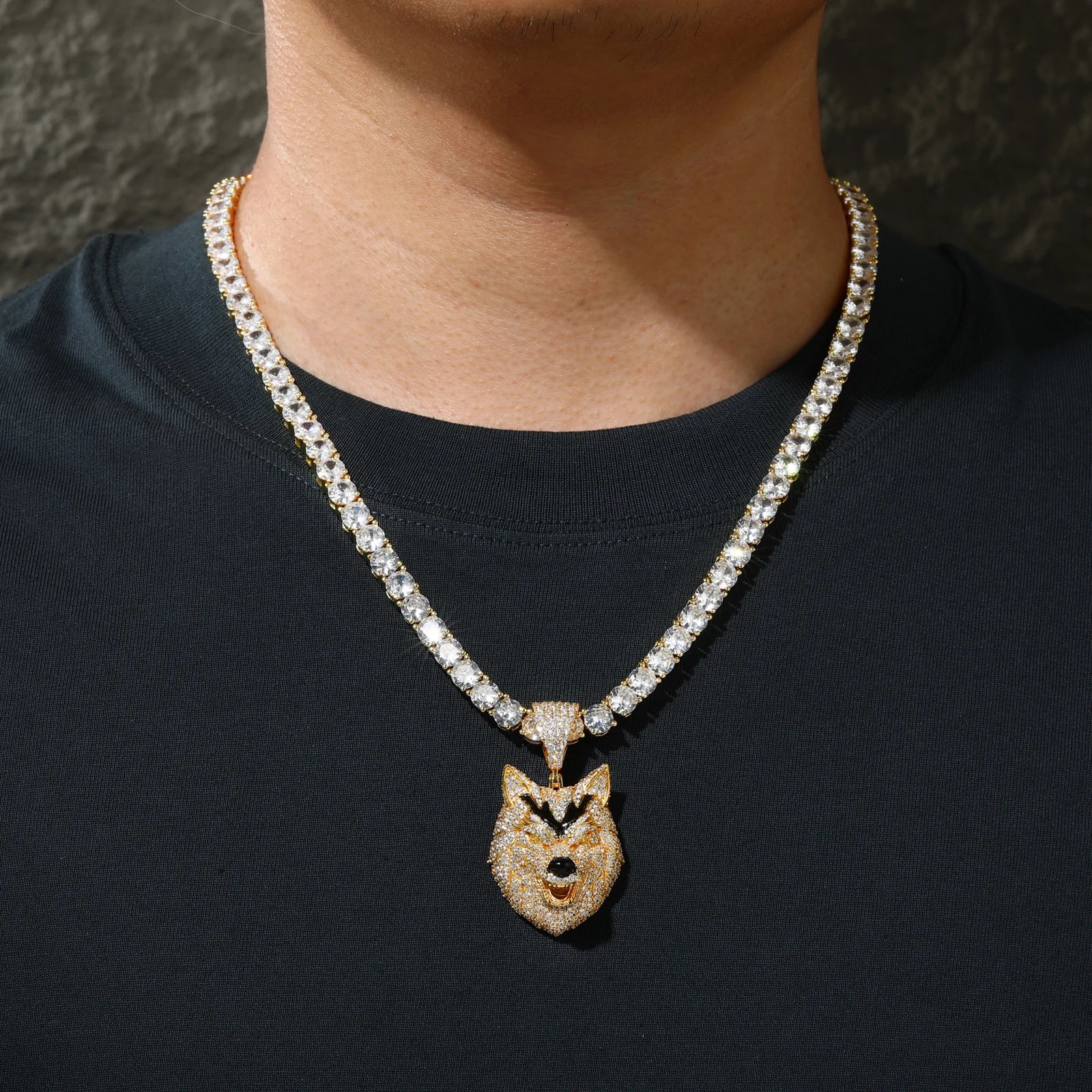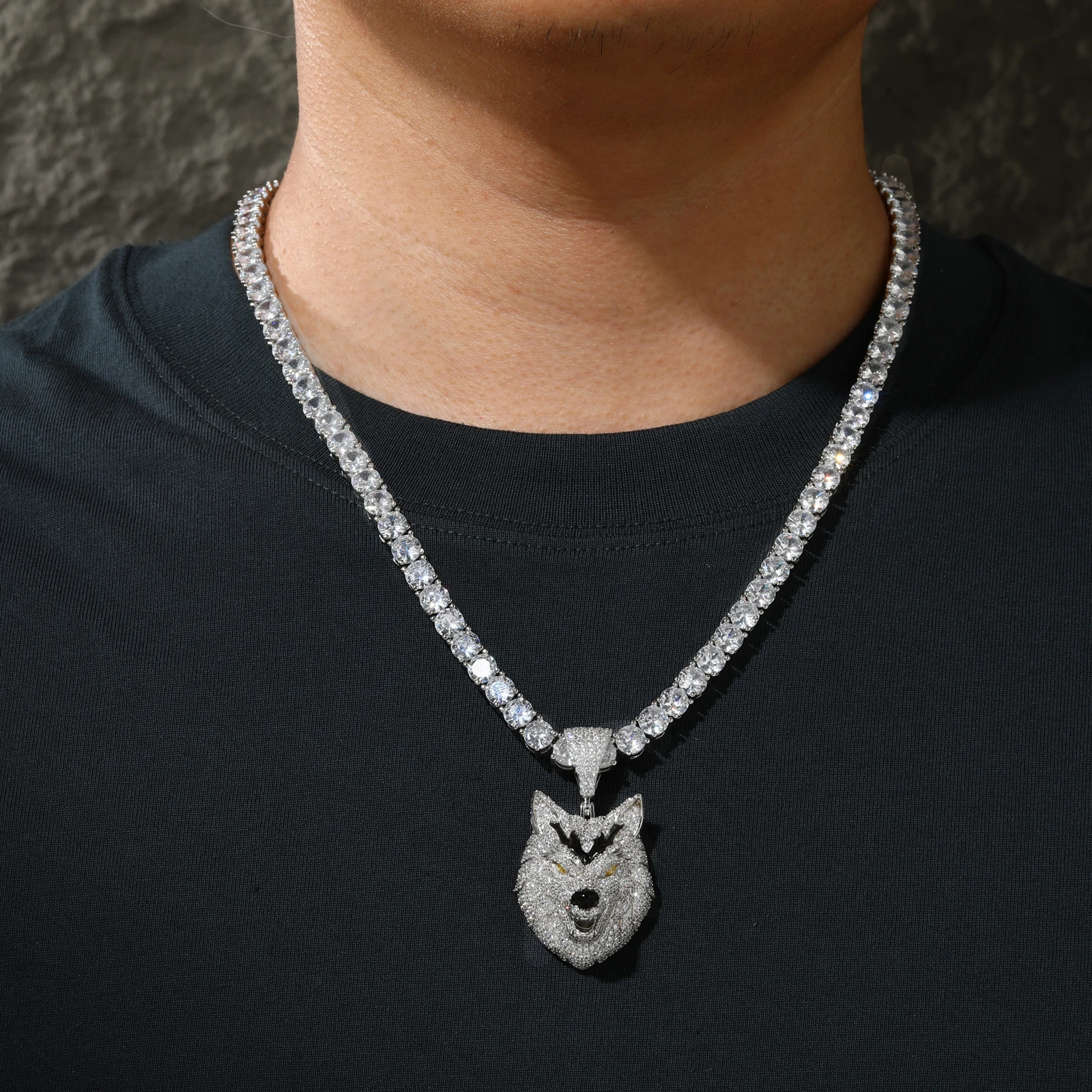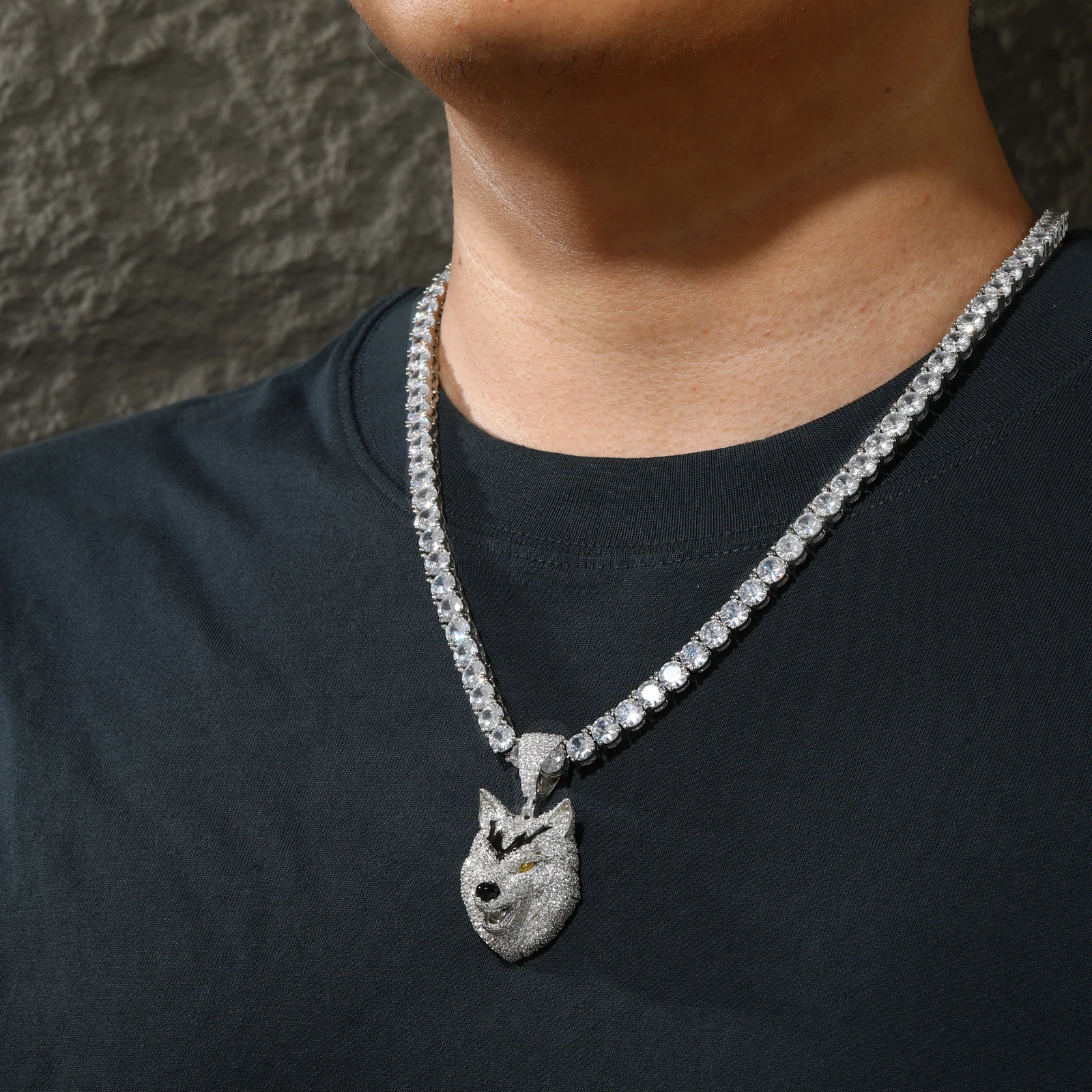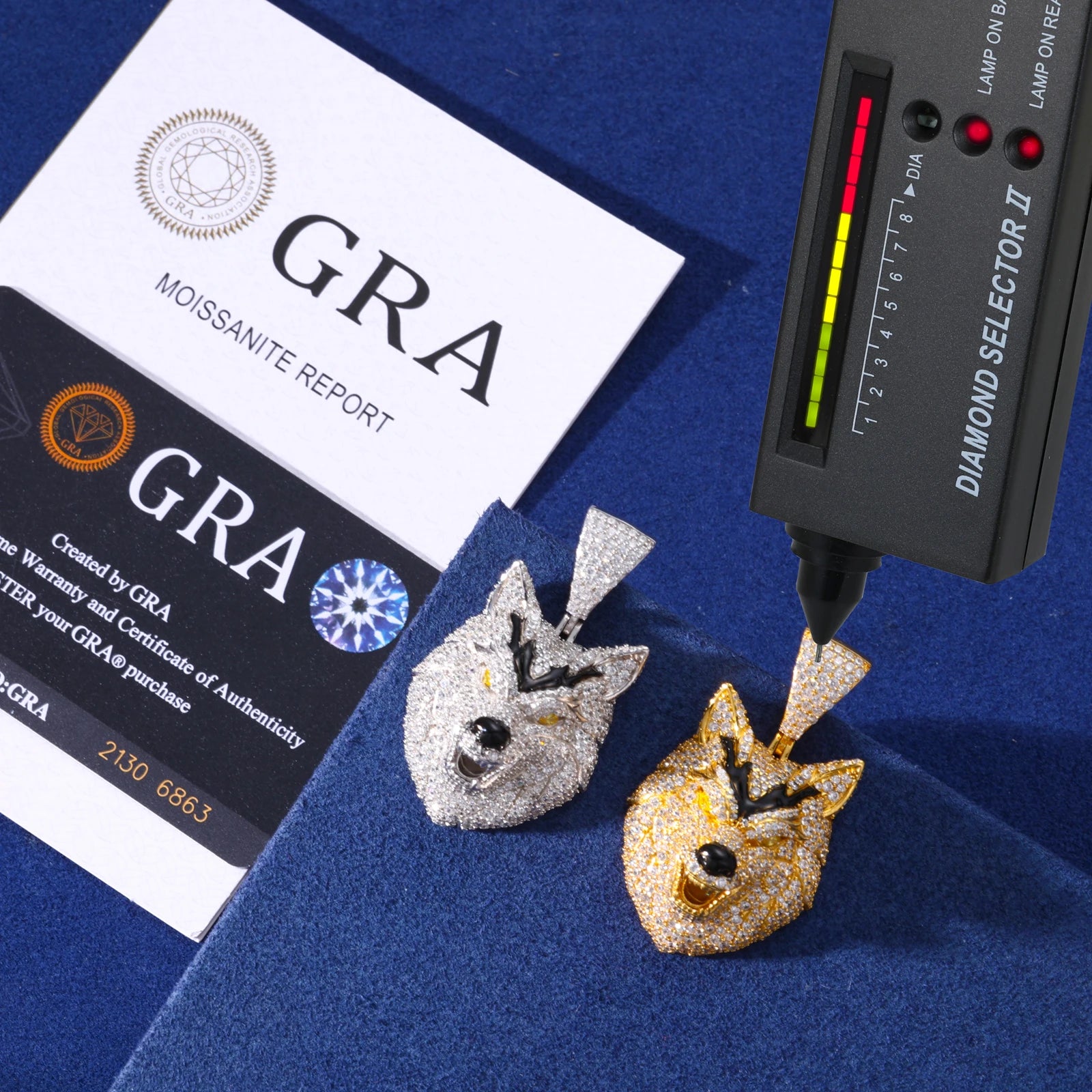 New Hip Hop 925 Sterling Silver Bling 3D Wolf Pendant Necklace Iced Out Moissanite Necklaces for Men Charm Jewelry Gift With GRA