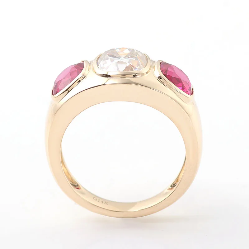 The ring base is made of 10k/14k/18k yellow gold, and you can also choose to use 10k 14k 18k white gold, rose gold, or yellow gold. Please consult us.