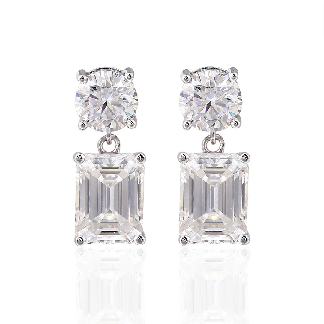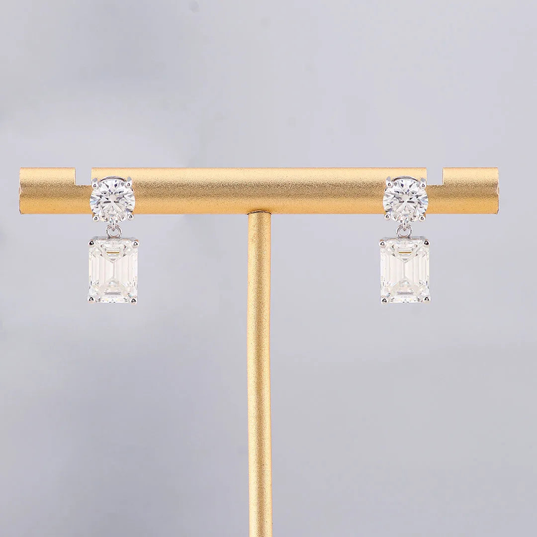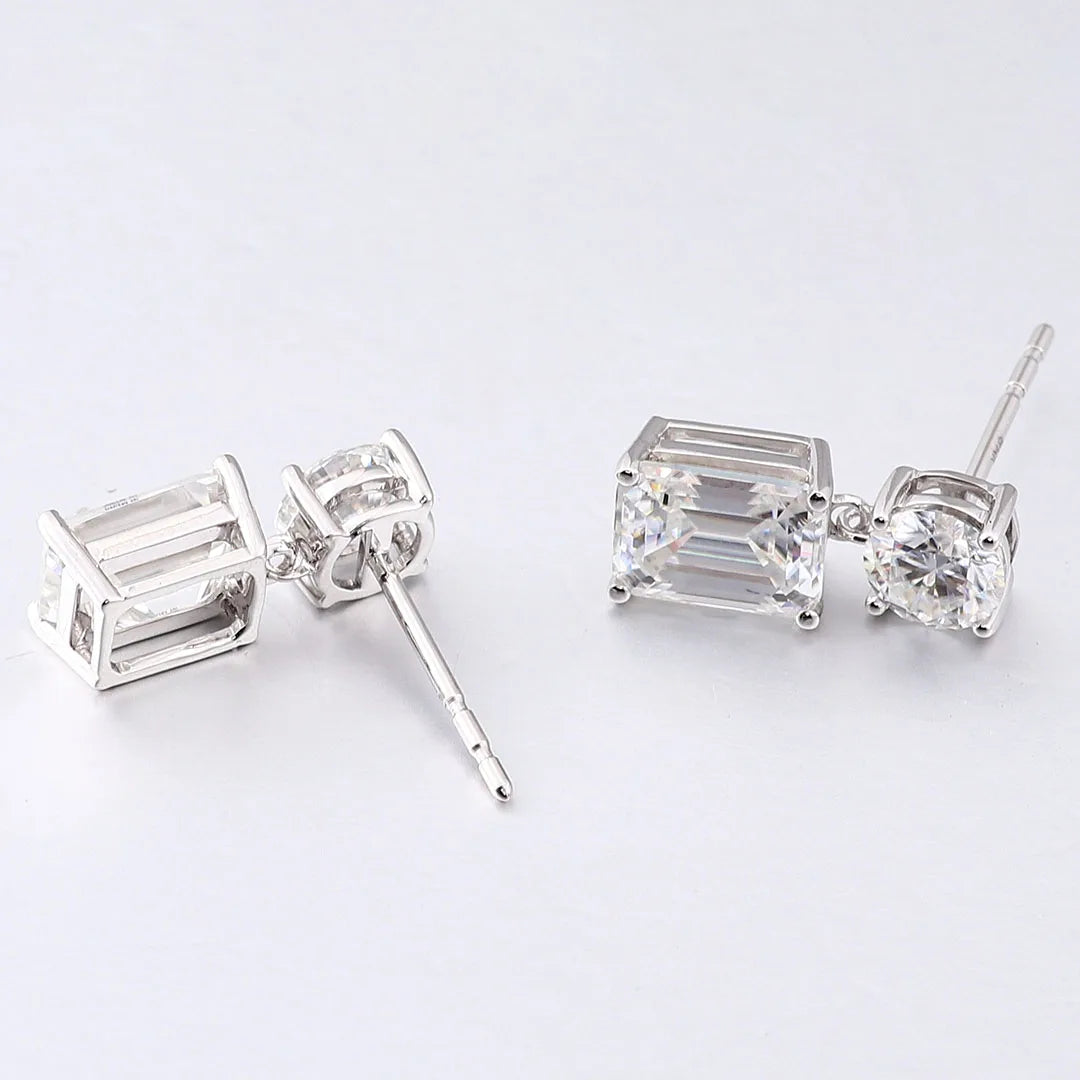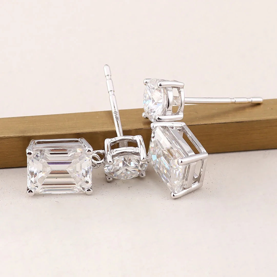 Stud Earrings Emerald-Cut VVS Moissanite 14K White Gold 4CT