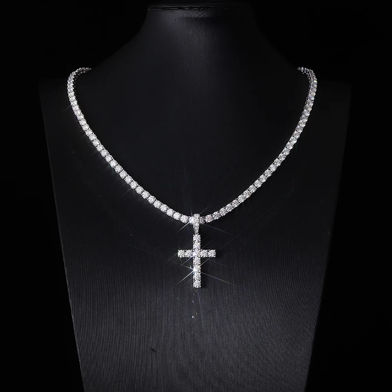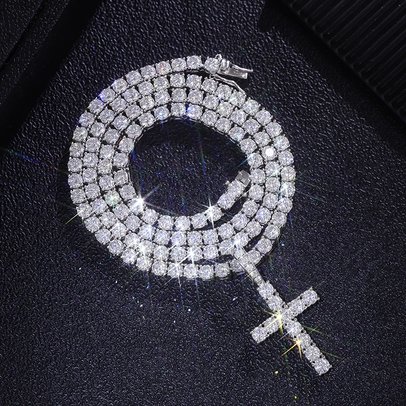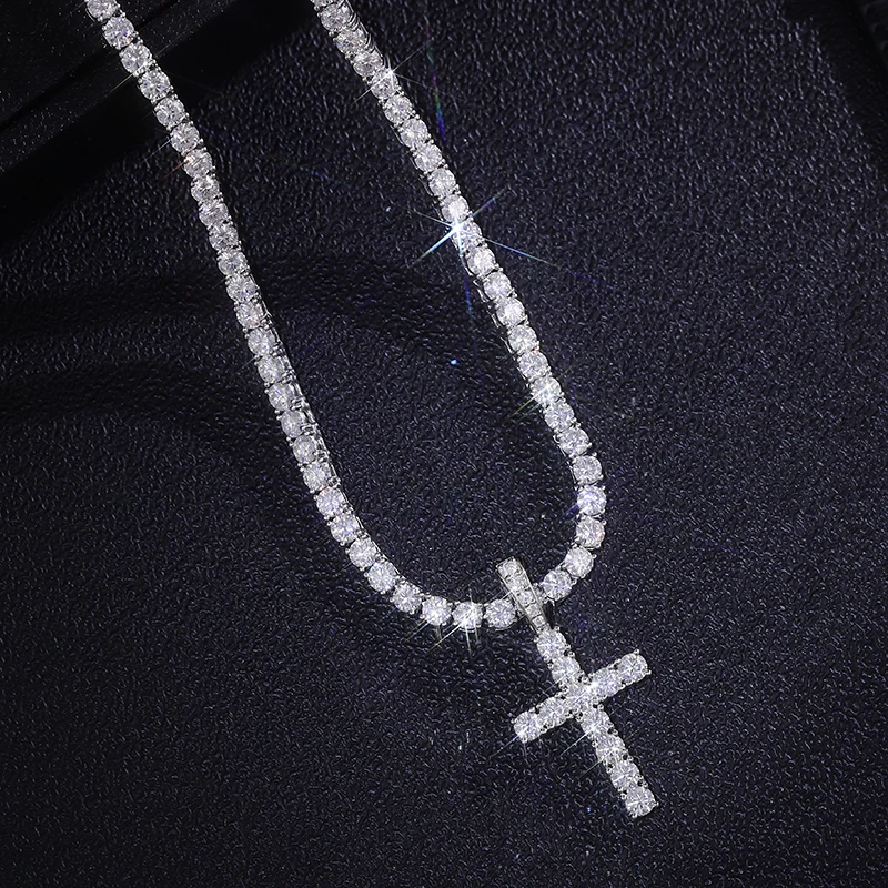 Provence Moissanite Cross Neclace for Women S925 Link Chain 4mm D Color VVS1 Tennis Necklace for Ladies Silver Cross Pendant GRA