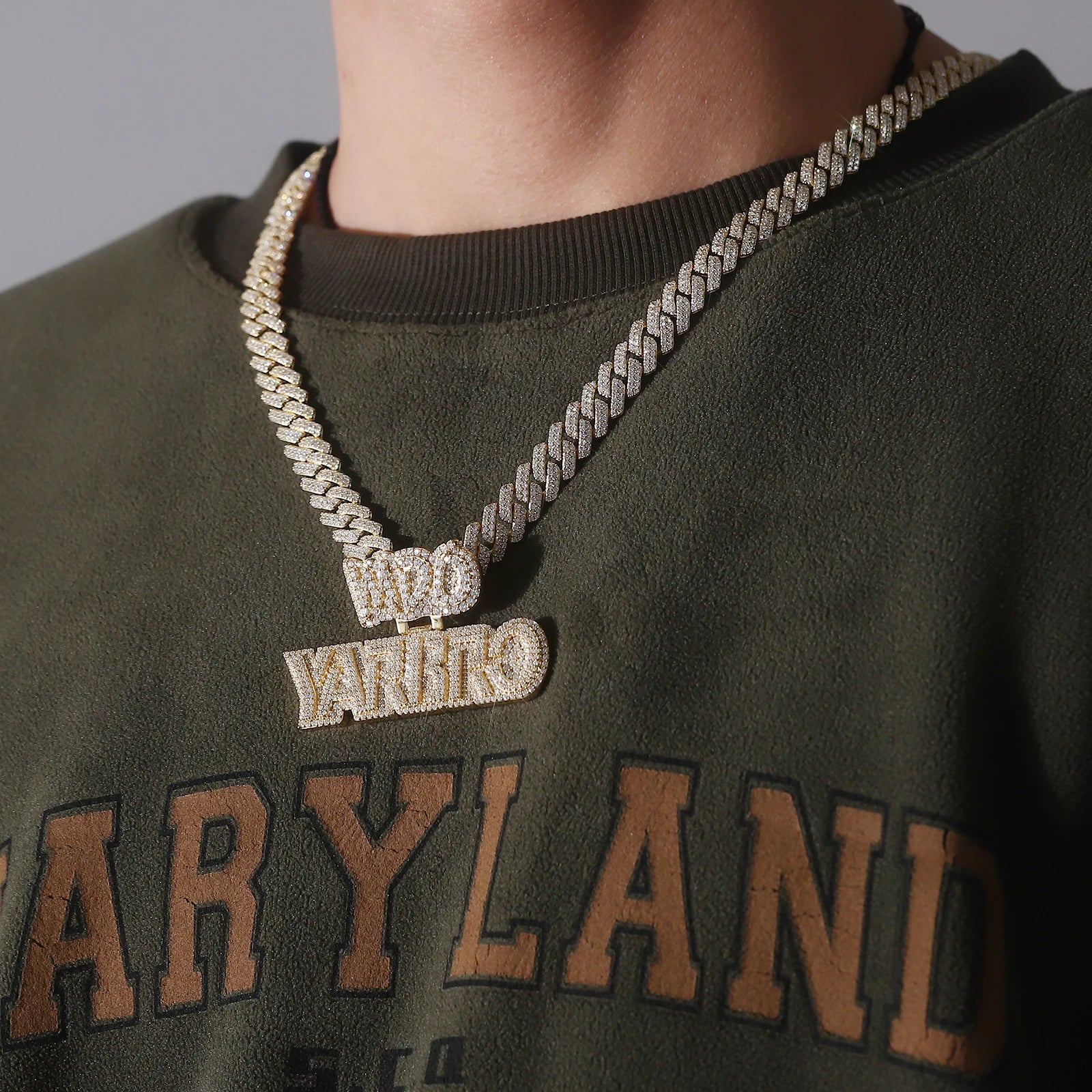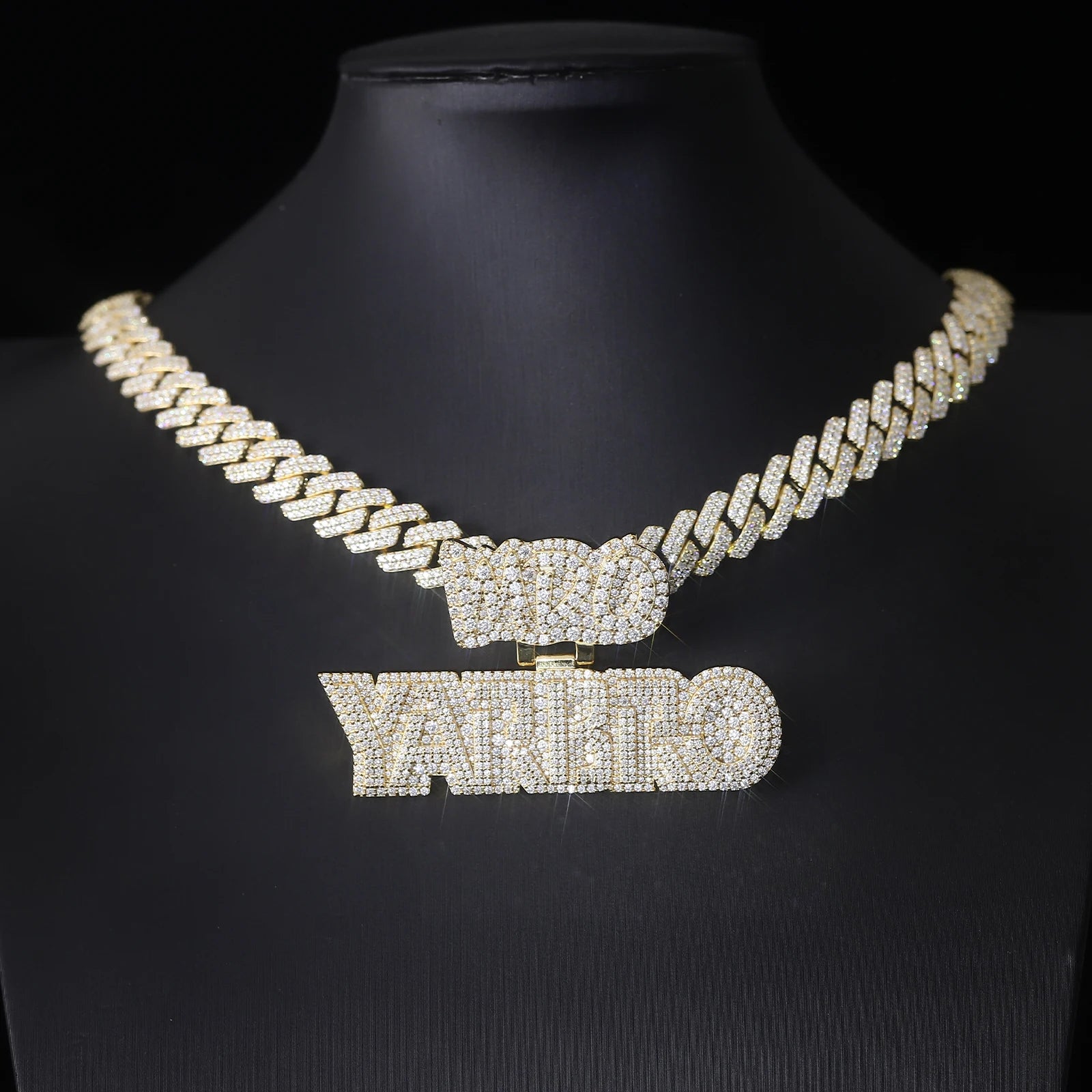 Stand out with this fully customized baguette letter pendant, crafted from solid 925 sterling silver and hand-set with DEF/VS VVS Moissanite stones that pass the diamond tester. Designed for artists, trendsetters, and jewelry lovers, this statement piece delivers maximum brilliance and individuality. Create your own nameplate in any size or style — a true fusion of craftsmanship, confidence, and luxury.