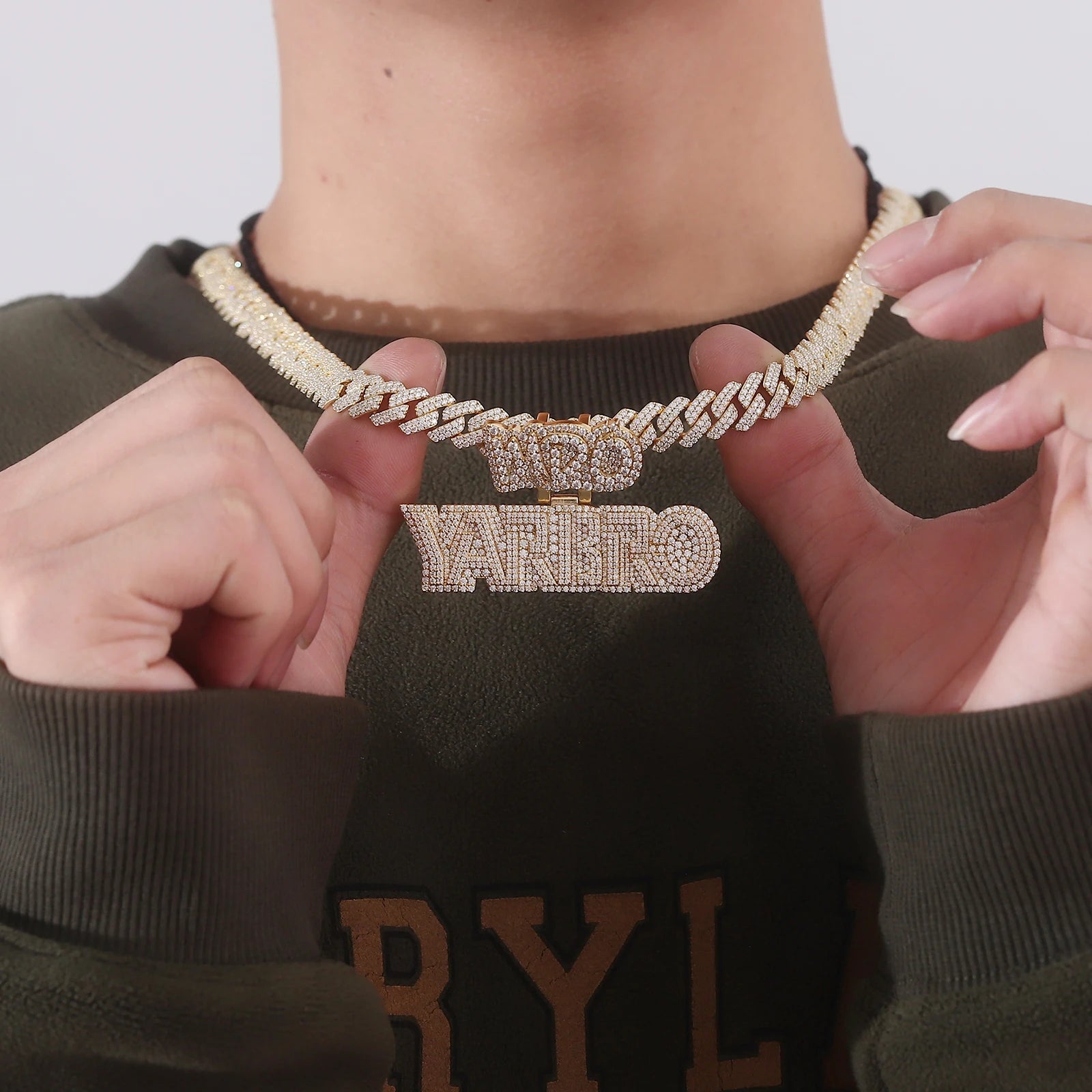 Custom Crown Letter Pendant – 925 Silver VVS Moissanite Iced-Out Name Necklace for Men