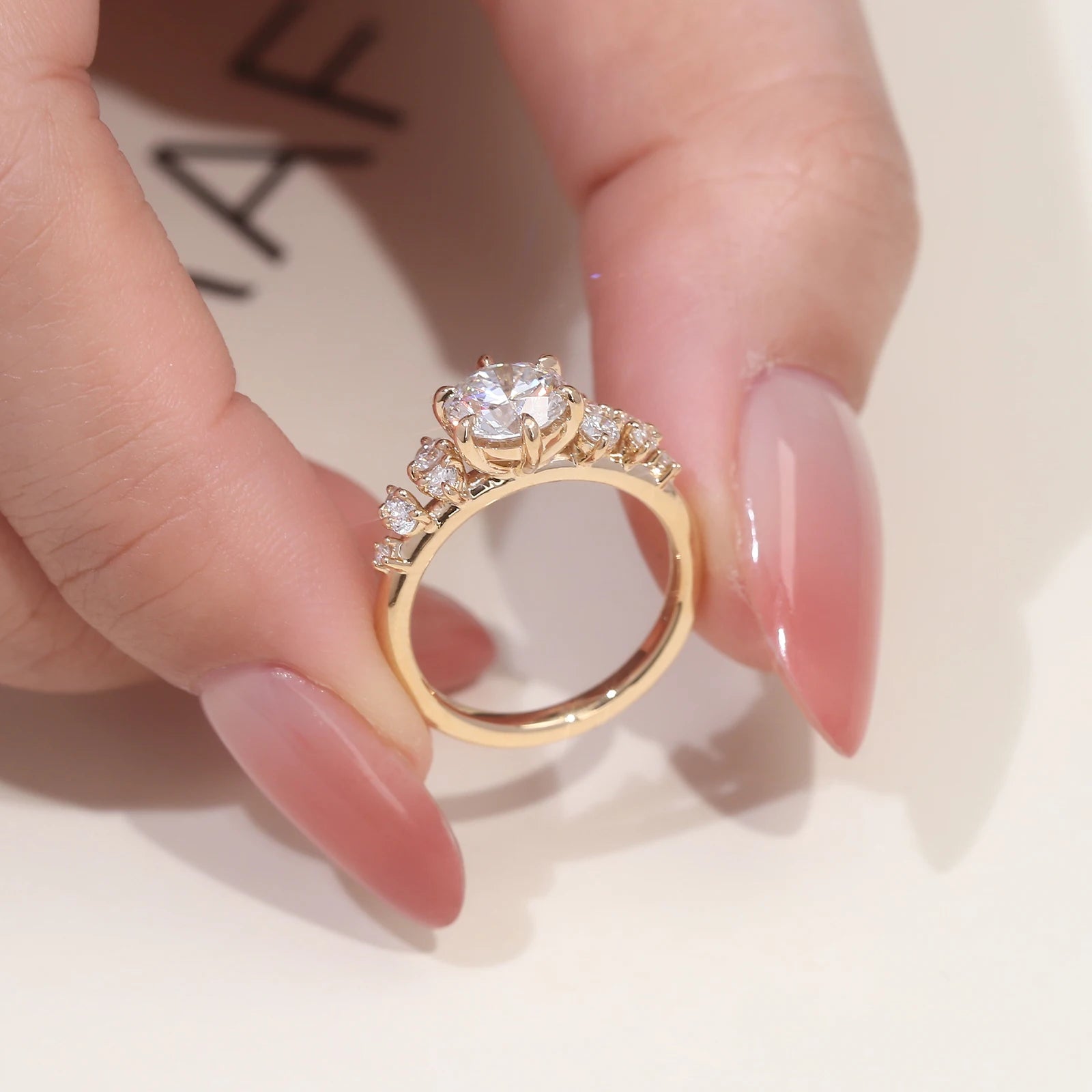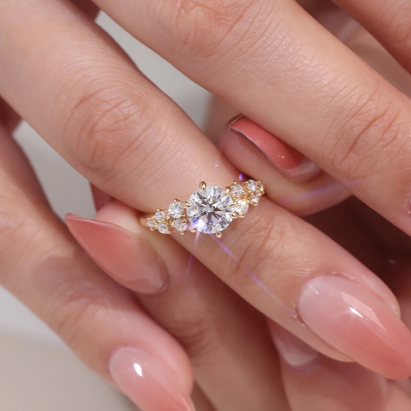 Perfect Gold Round 10K–14K -Cut 1CT VVS Moissanite Flower Engagement Ring
