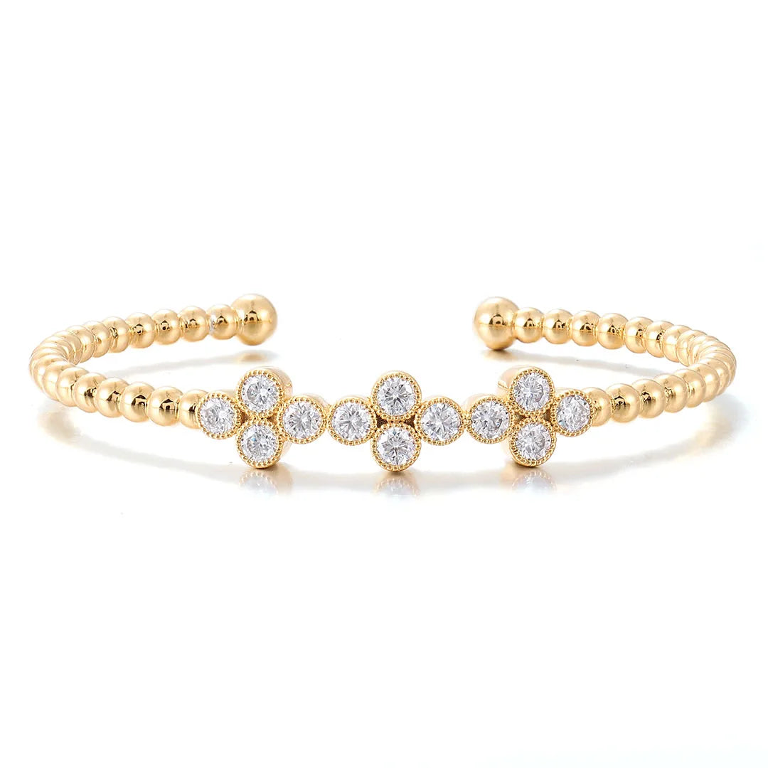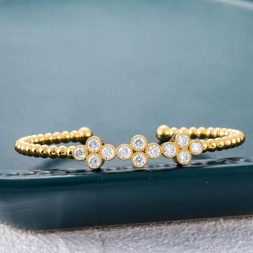 Gold Moissanite Bangle Bracelet 10K–18K – Round-Cut D Color VVS Stones with GRA Certification