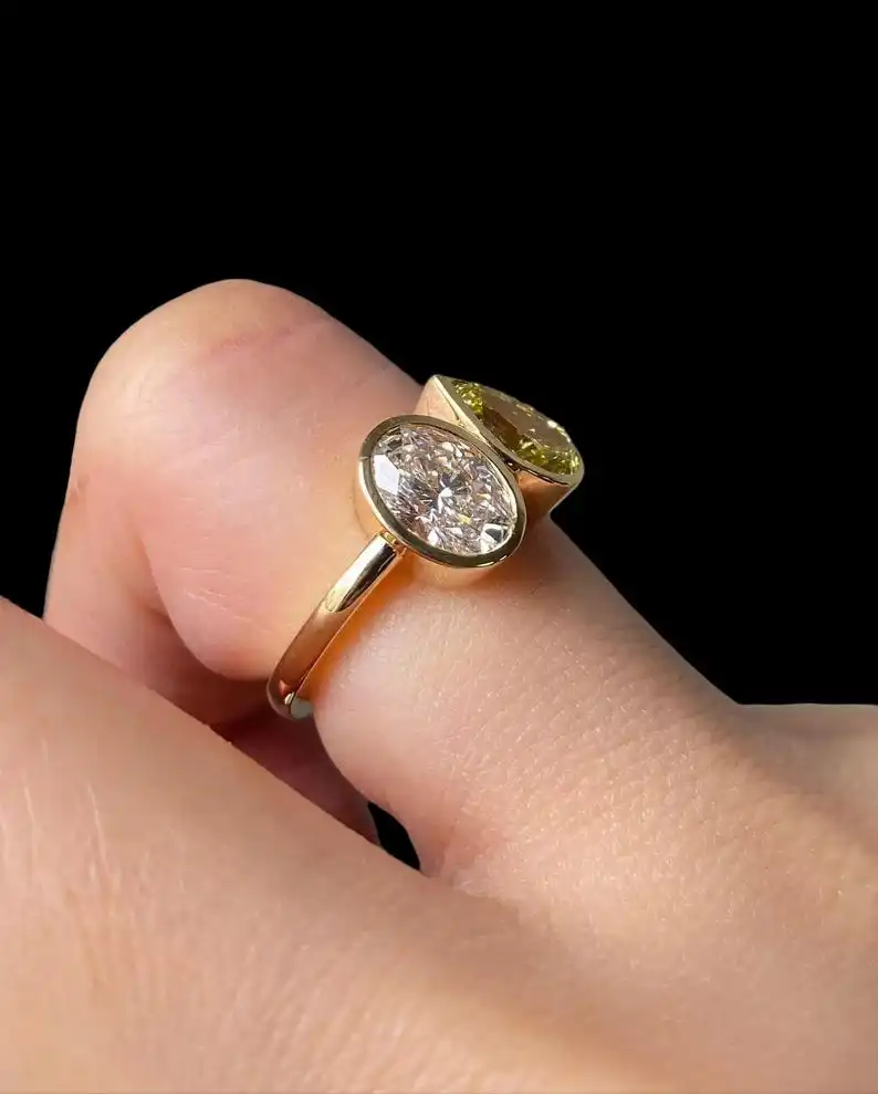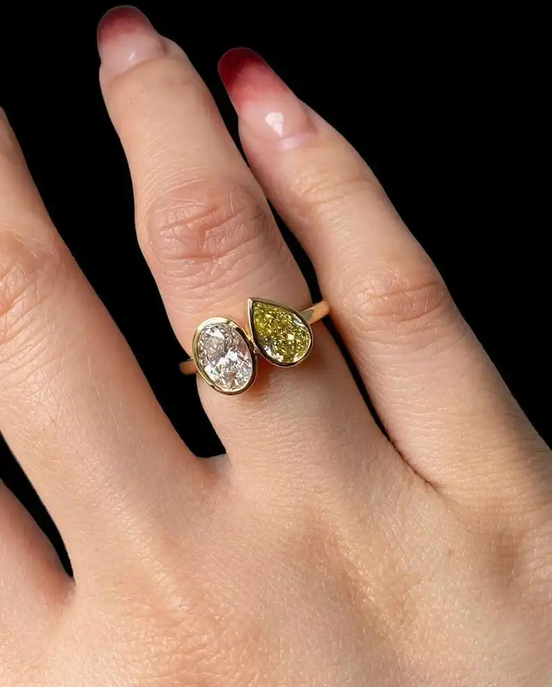 name or words: Yellow Pear And White Oval Cut Diamond Toi Moi Ring