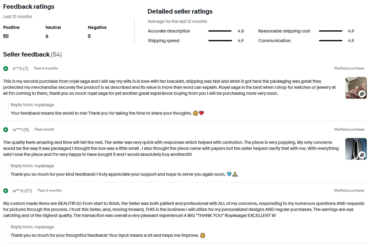 5-star ratings and consistent positive feedback on platforms like eBay.