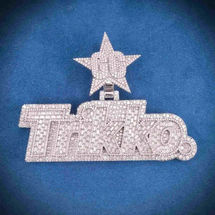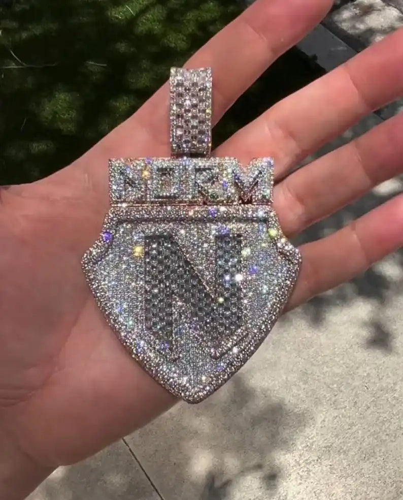 name or words: Shield Plate In Word Hip Hop Round Cut Diamond Pendant