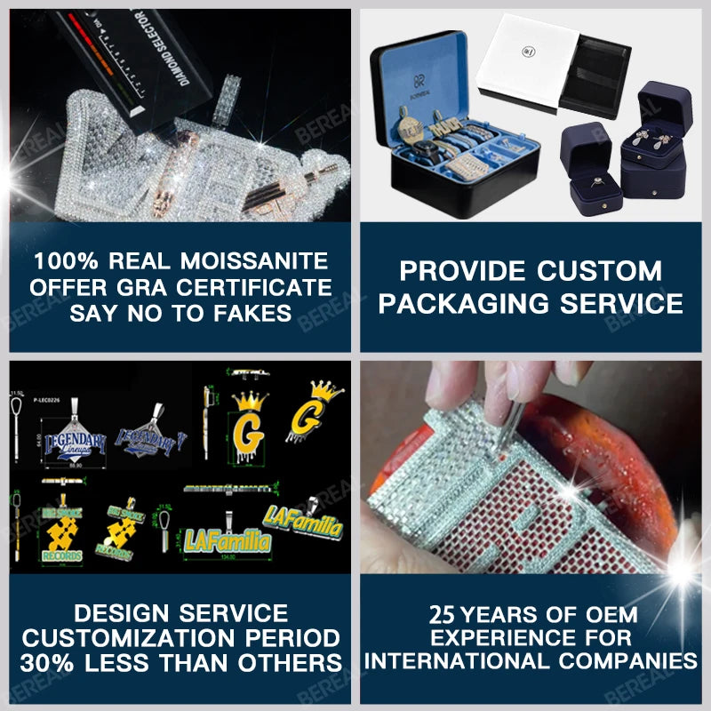 A:Ordinary products can be shipped within 3 days, customized Cuban chains and tennis chains take about 7 days, and customized pendants take 10-15 days. In addition, we will communicate with you in time at all stages of product production, and we will also notify you in time and check the goods with you by video before delivery.