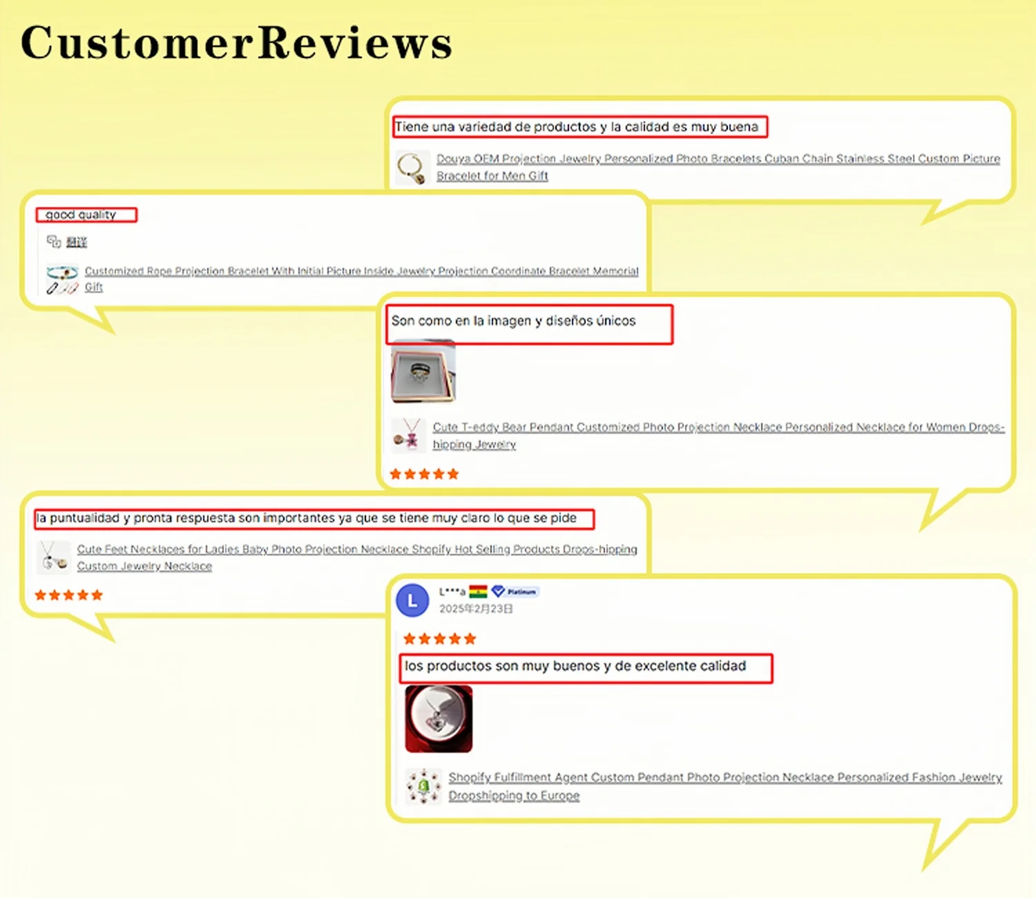 1. who are we? Douya Jewelry was founded in 2014, which is ranked on top for the production scale, annual turnover, and cost performance strategy among similar market products, and has more than 2,000 channel cooperation partners in Middle East, South America, Western Europe, Eastern Europe, Russian Federation, west Asia, Southeast Asia and China Mainland. At present, the annual turnover reaches RMB one hundred million Yuan. Douya Jewelry owns more than 1000+ employees, which is one of the most famous and largest fashion jewelry enterprises in China and even the whole world. 2. how can we guarantee quality? Always a pre-production sample before mass production; Always final Inspection before shipment; 3.what can you buy from us? Earrings,Necklace,Pendant,Bracelet,Ring 4. why should you buy from us not from other suppliers? DOUYA Jewelry Factory has specialized in this field of fashion accessory. Top Quality Control, Fast Delivery time, Real-time Feedback, Response Quickly, Low MOQ... 5. what services can we provide? Accepted Delivery Terms: FOB,EXW,Express Delivery; Accepted Payment Currency:USD,EUR,CAD,AUD; Accepted Payment Type: T/T,L/C,MoneyGram,Credit Card,PayPal,Western Union,Escrow; Language Spoken:English