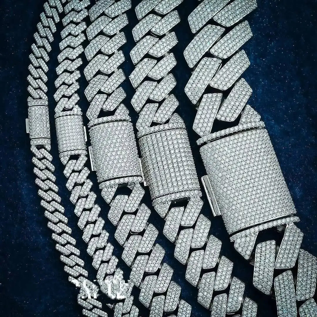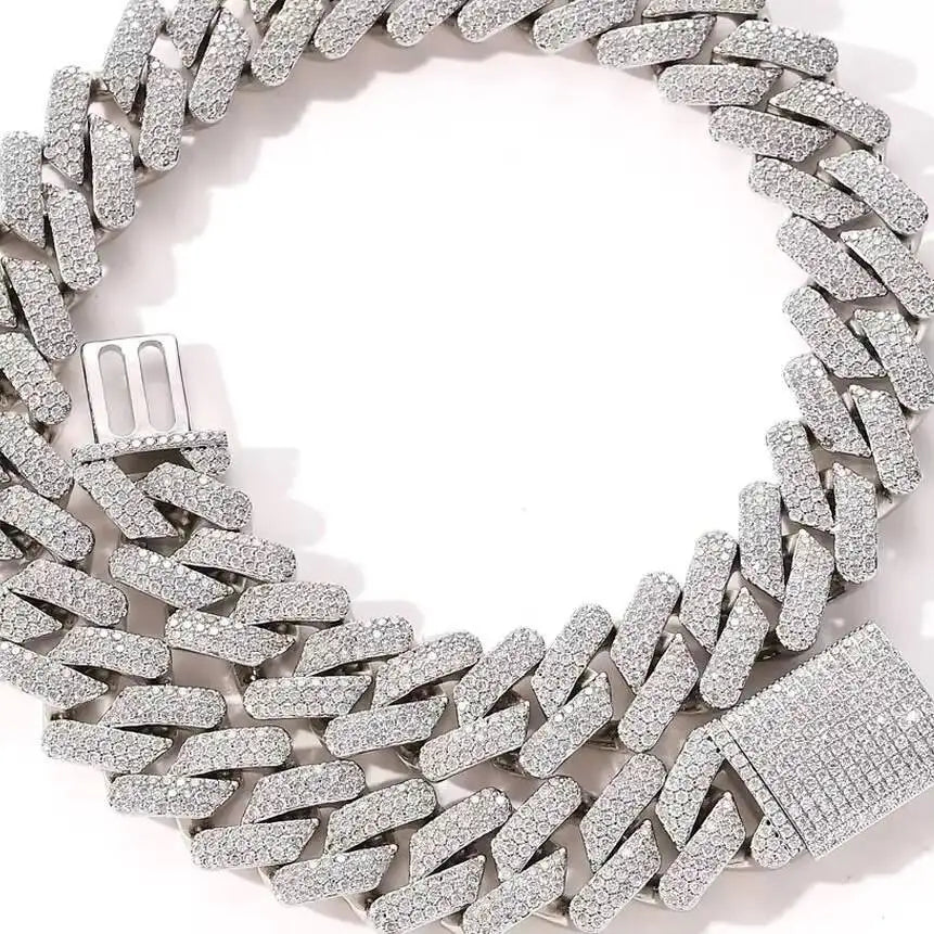 S925 sterling silver inlaid VVS full moissanite hip-hop trendy Cuban moissanite bracelet necklace |