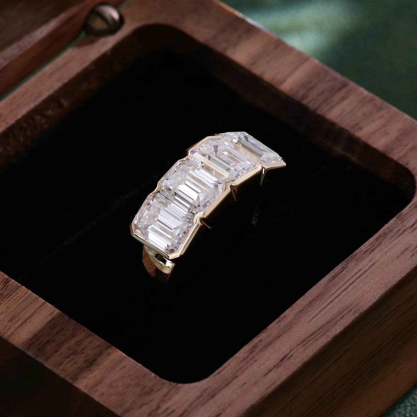 Make a bold statement of elegance with this handcrafted 14K solid gold men’s ring, featuring a 5-carat EF Color VVS Moissanite in a refined emerald cut. Designed with precision and sophistication, it reflects timeless strength and brilliance. Perfect as a wedding band, engagement ring, or luxury gift, this piece embodies craftsmanship, confidence, and enduring style.