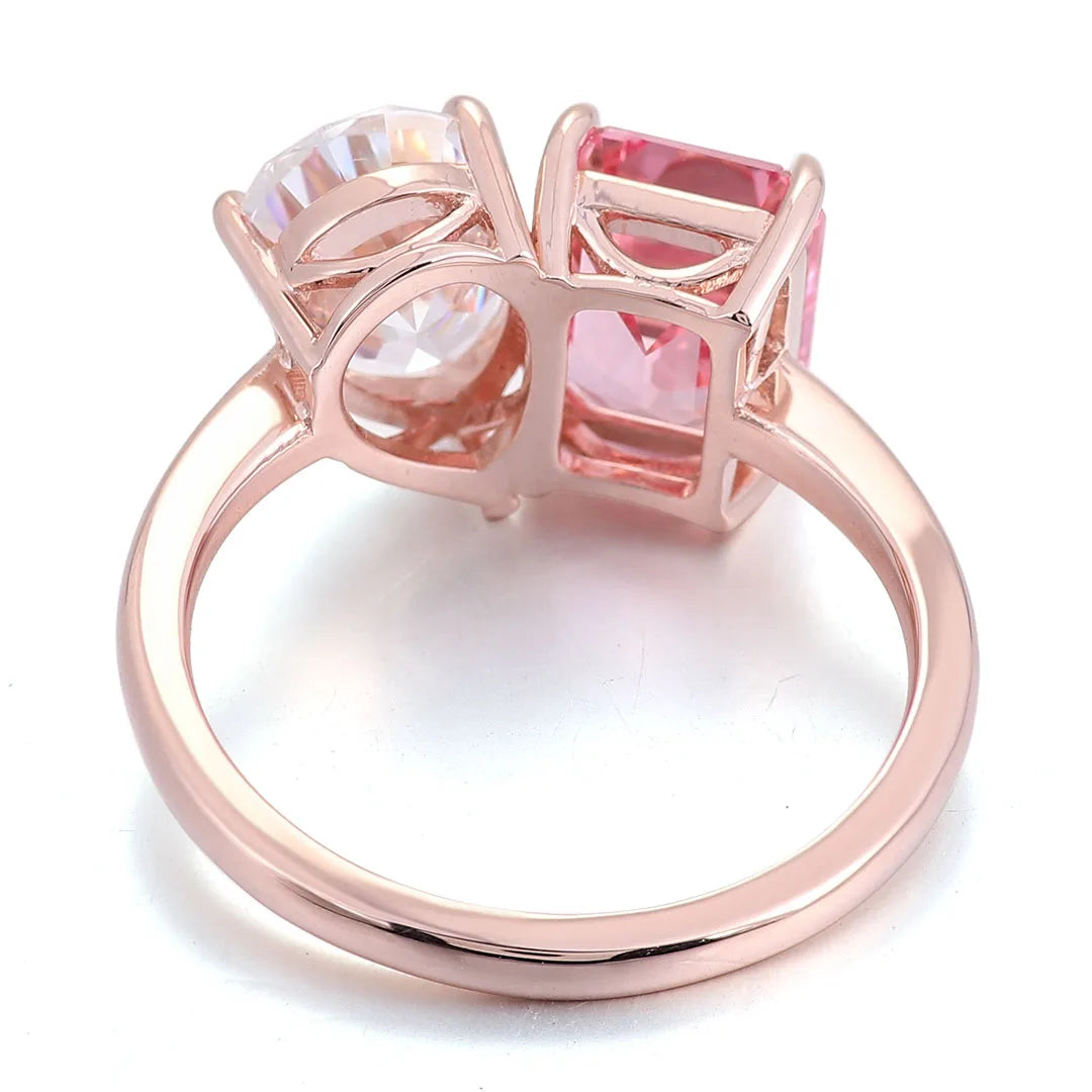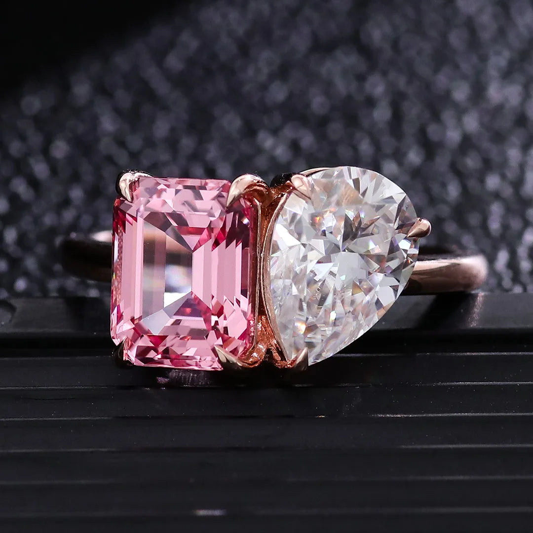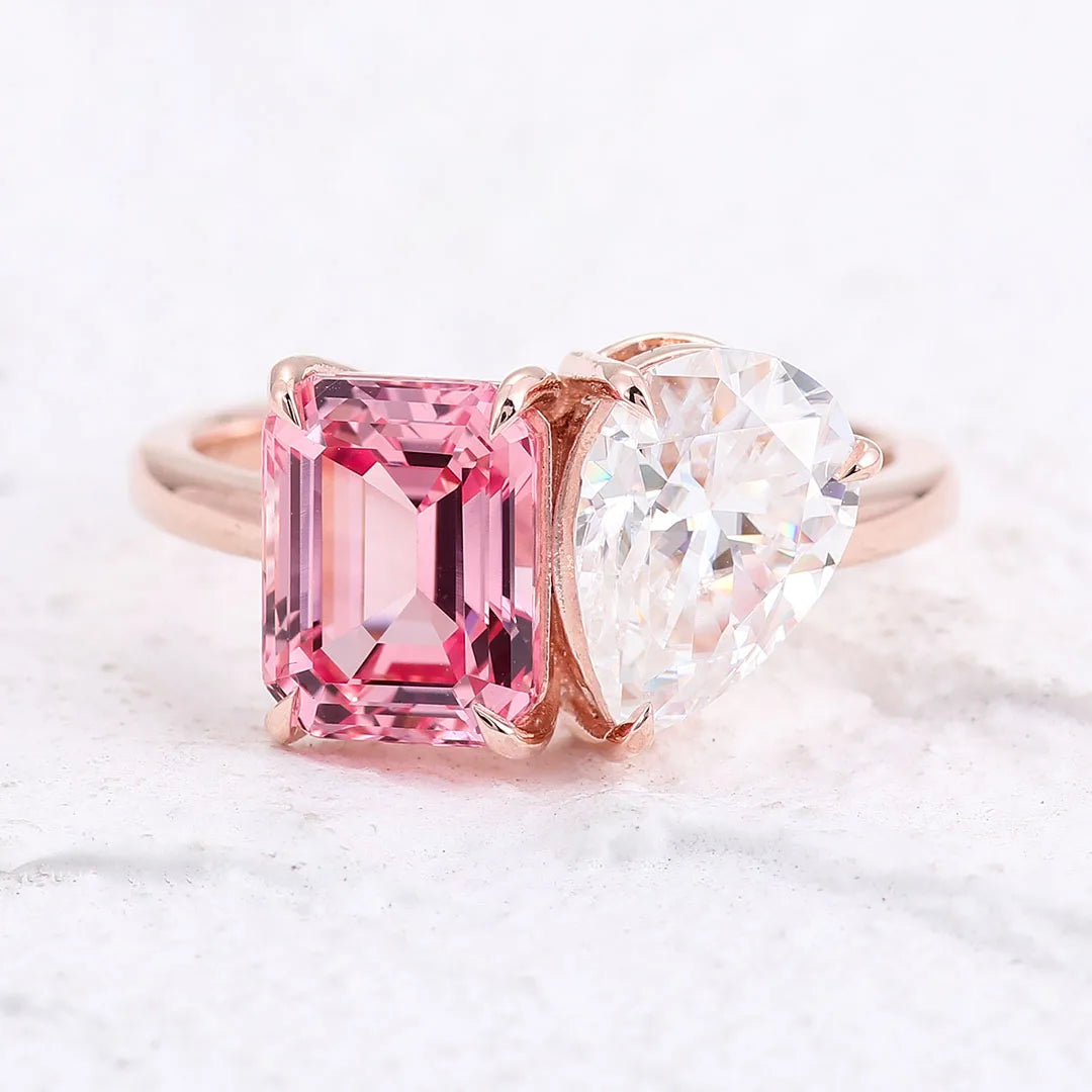 Pink 14K–18K Gold 1CT Emerald-Cut VVS Moissanite Flower Halo Engagement Ring